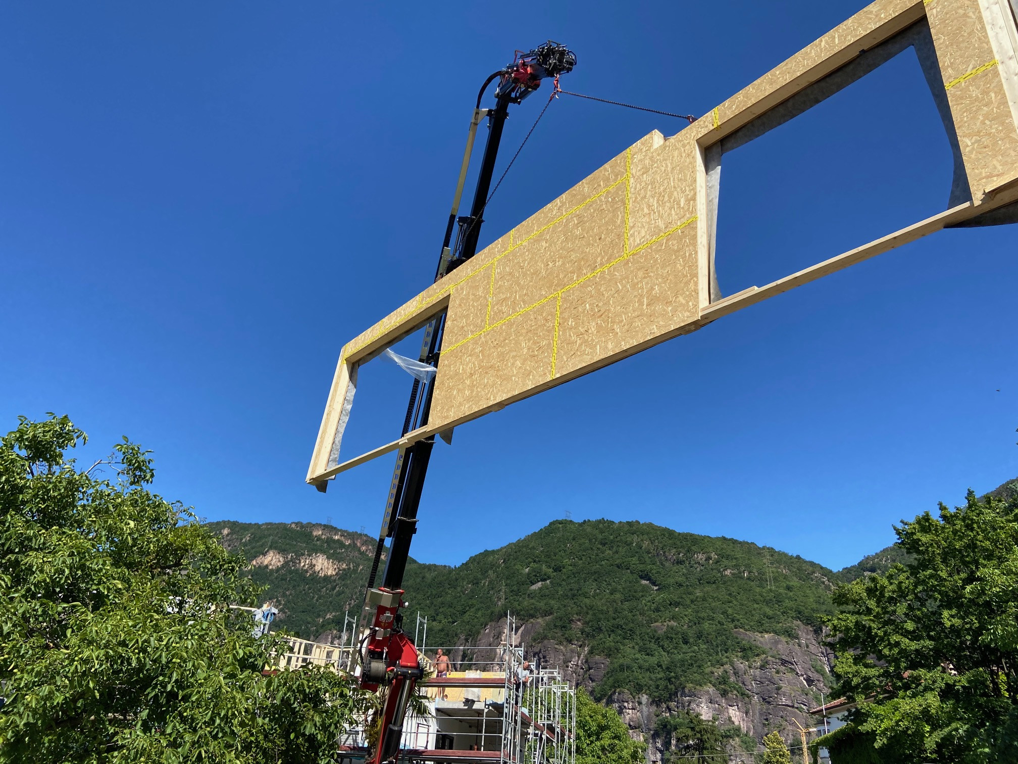 Ēkai ir lieli laidumi un plaša dzīvojamā istaba ar izmēriem 7*7 m, tāpēc jumtā lietotas speciāli pasūtītas līmsijas. Arī jumta pārkarēs ir redzamas līmsijas. Visās konstrukcijās ir izmantoti ekoloģiski risinājumi. Sienas pildītas ar celulozi un noklātas ar kokšķiedras siltuma izolāciju. Šādā veidā konstrukcijām tiek panākta lieliska termiskā inerce, kas Itālijas siltajā klimatā ir ļoti svarīgi. Ēkā nav lietota tvaika izolācija klasiskā tās izpratnē, bet gan “elpojošas” tātad tvaiku caurlaidīgs slānis. Konstrukcijas tvaika kontroles funkciju veic OSB 18 mm biezumā, kurš ir hermetizēts visā plaknē. Šie risinājumi ļauj panākt stabilu un patīkamu mikroklimatu telpās ar mazāku aktīvo HVAC sistēmu palīdzību.