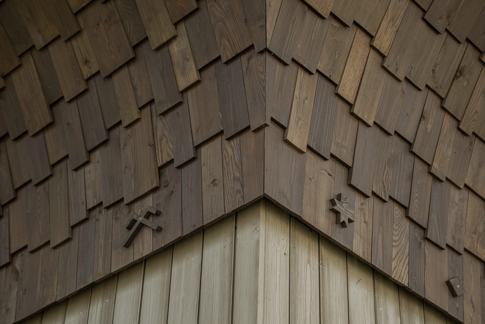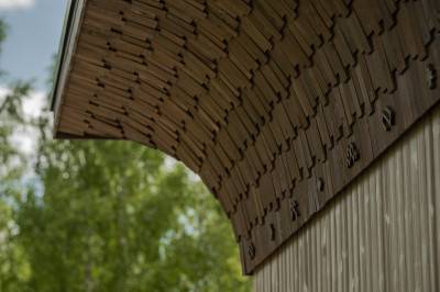 Tik daudz kas šajā ēkā tapis ar mūsu rokām: koka detaļas, savienojumi bez skrūvēm, pārkares apdare no pašu ražošanas atlikumiem – lapegles, priedes, oša, ozola un pat parketa dēļiem no Latvijas Nacionālās operas restaurācijas darbiem.